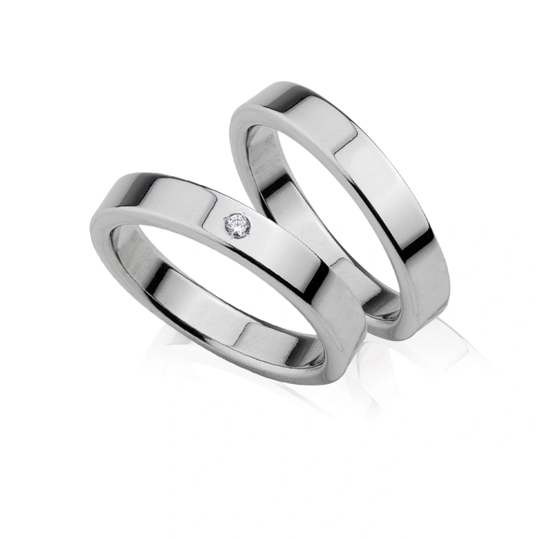 Esta elegante alianza de boda en acero combina un diseño moderno con la resistencia y durabilidad del material. Su acabado brillante y la incorporación de una circonita la convierten en una opción sofisticada y atemporal.