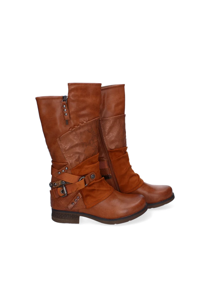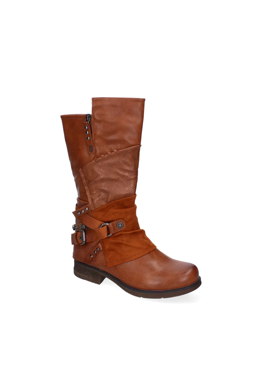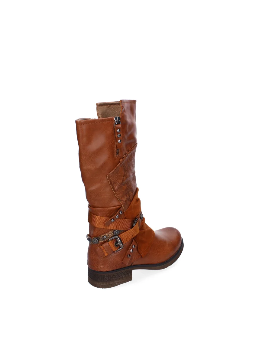 Botas de Mujer Con Detalles de Hebilla y Tiras Decorativas Diseño Elegante y Moderno con Punta Rendonda y Cierre de Cremallera Lateral.