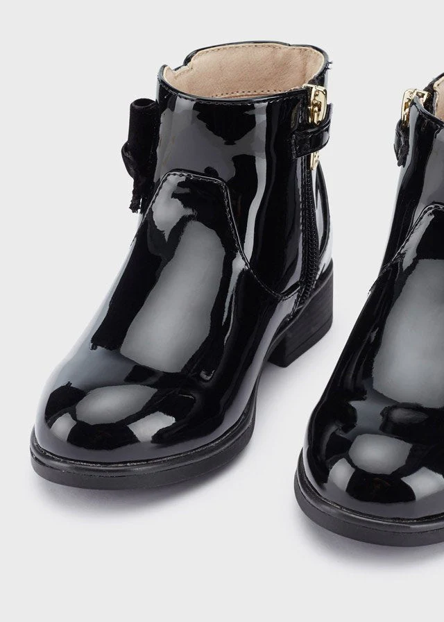 botín color negro para niña, moño de decoración al costado