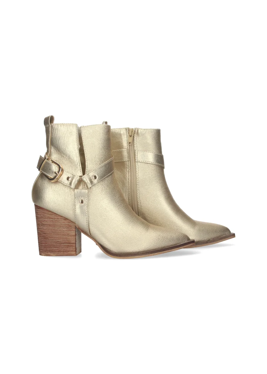 Botines de Mujer con Tacón Campero Elegantes con Hebilla Punta Fina y Cierre de Cremallera lateral.