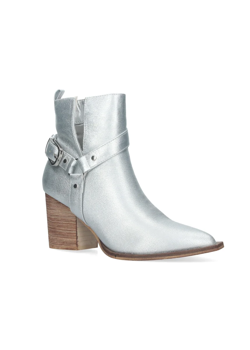 Botines de Mujer con Tacón Campero Elegantes con Hebilla Punta Fina y Cierre de Cremallera lateral.