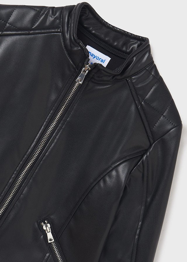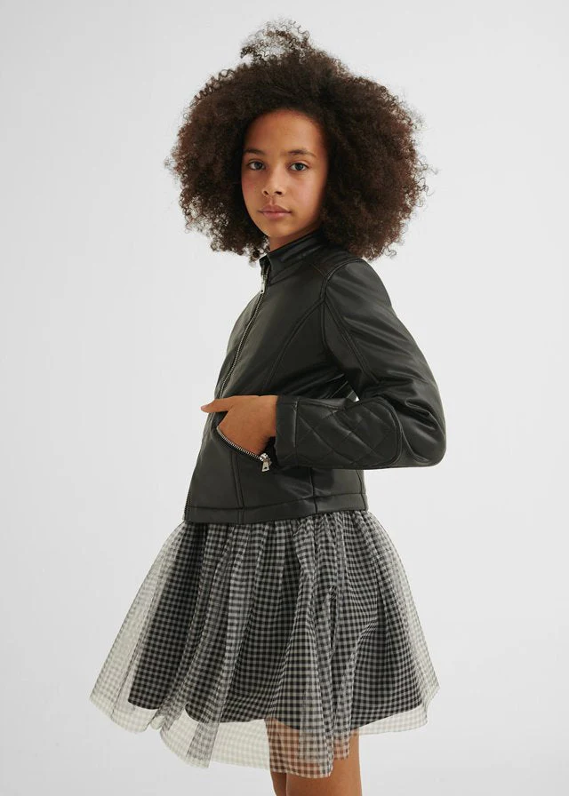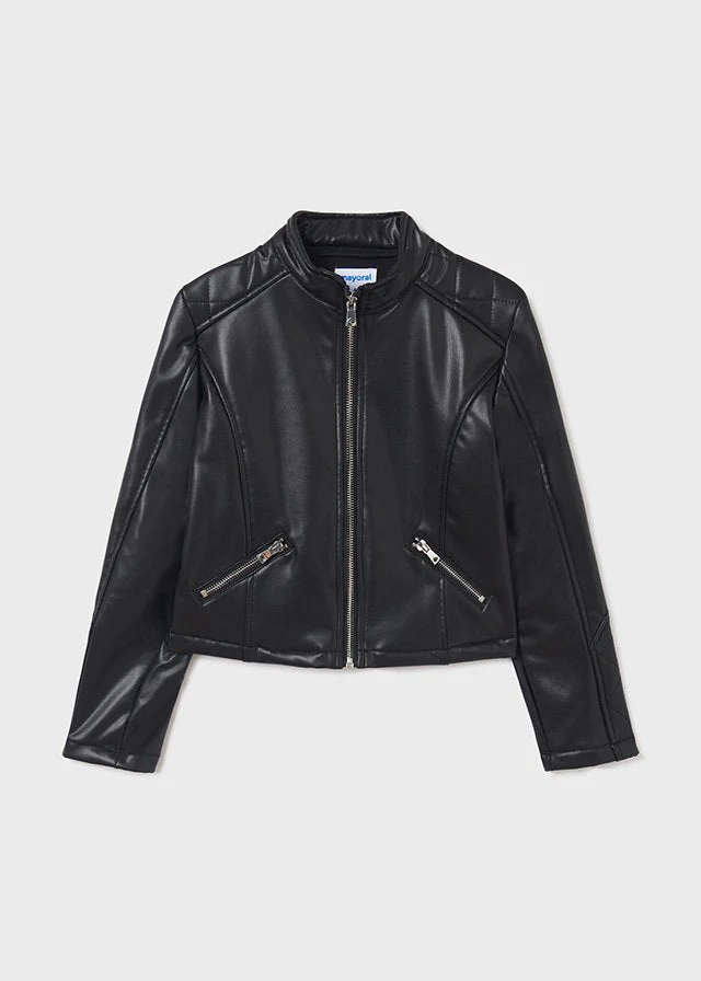 Chamarra de manga larga para chica. Cierre central delantero con cremallera.