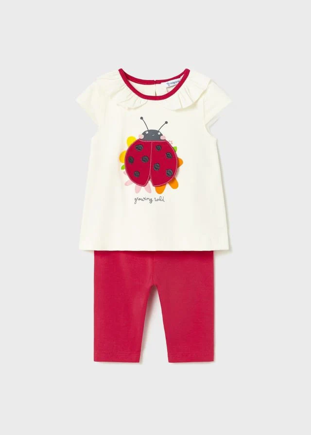 Prenda ECOFRIENDS, contiene algodón sostenible. Conjunto de dos piezas para bebé compuesto por una playera con pantalón tipo leggings combinado.