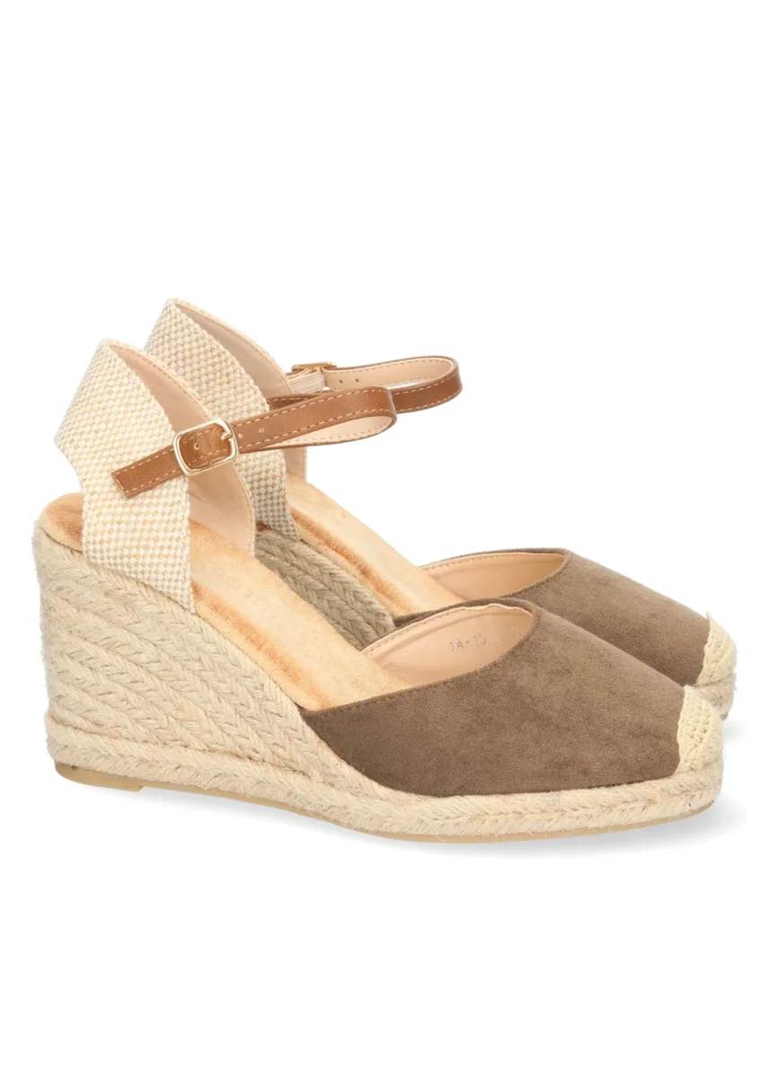 Sandalia de Cuña para Mujer Cómodas Forrado de Yute Pala Cerrada y Cierre de Hebilla.