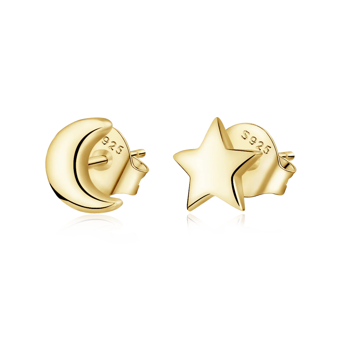 Pequeños pendientes con forma de luna y estrella, en plata de primera ley (S925).
