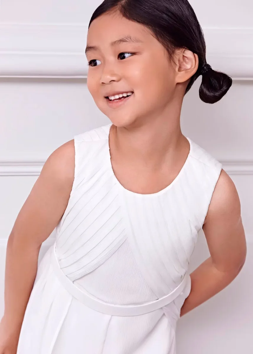 Este mono está confeccionado en gasa bambula de color nata, ofreciendo comodidad y un estilo delicado para tu pequeña. Ideal para cualquier ocasión, combina suavidad y elegancia en una sola prenda.