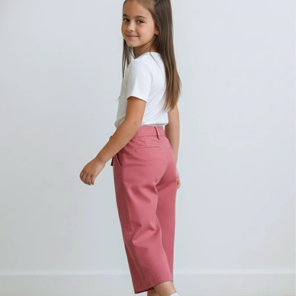 Nuestro pantalón para niñas tipo culotte en color fresa con cinturón lazo es la elección perfecta para un look trendy y cómodo. Diseñado para brindar estilo y diversión en cada uso, este pantalón para niñas combina versatilidad y moda en una prenda única.