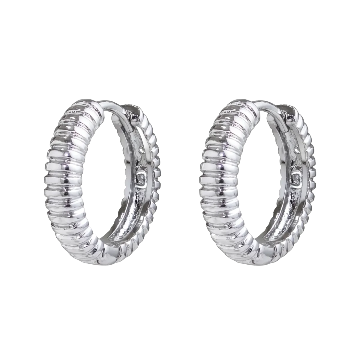 Pendientes de aros con surcos horizontales, uniformemente espaciados que crean una forma acanalada, elaborados en plata esterlina.
