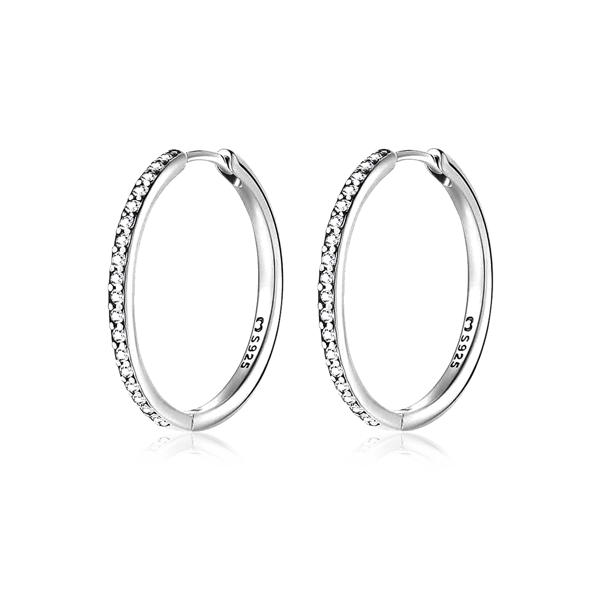 Pendientes formados por amplios y finos aros, acompañados de iluminantes circonitas, en plata de primera ley (S925).
