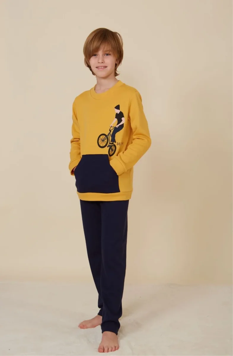 - Pijama de niño en tejido de algodón con afelpado interior.