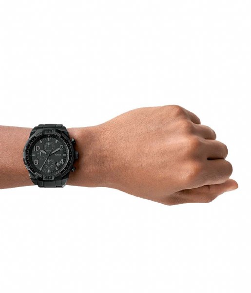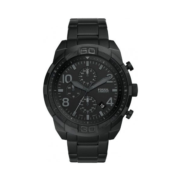 Reloj hombre Fossil cronógrafo con esfera negra satinada y correa acero inoxidable negro. Caja de acero negro con un diámetro de 50mm. Resistente al agua hasta 5 ATM. Apto para uso diario (ducha, baño).