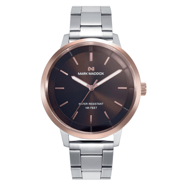 Este reloj de hombre Mark Maddox combina elegancia contemporánea y diseño urbano en una pieza sofisticada y con mucho estilo. Su caja de acero con acabado en tono rosa y el brazalete de eslabones en acero inoxidable aportan un aire moderno y refinado, perfecto para quienes buscan destacar con un accesorio diferente.