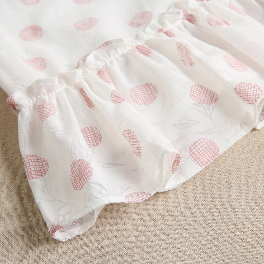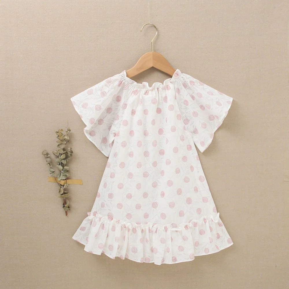 Vestido de niña blanco con estampado en tonos rosas y volante inferior