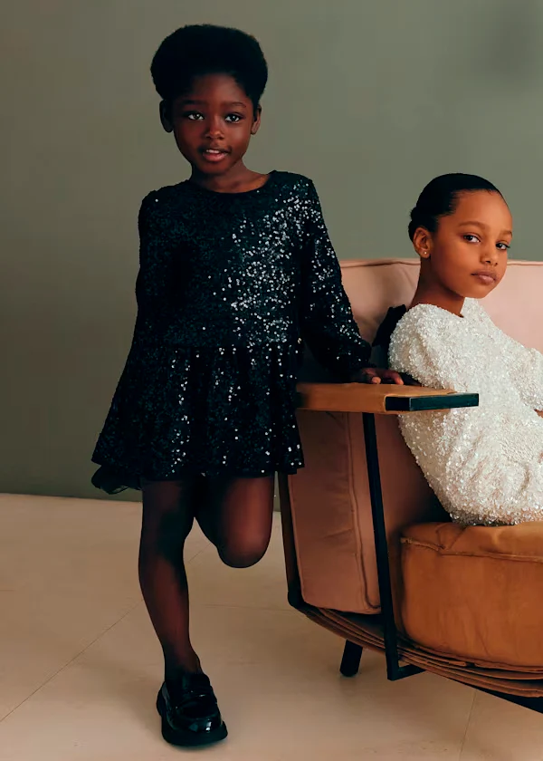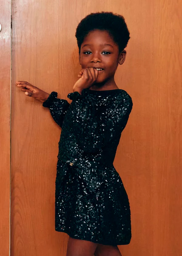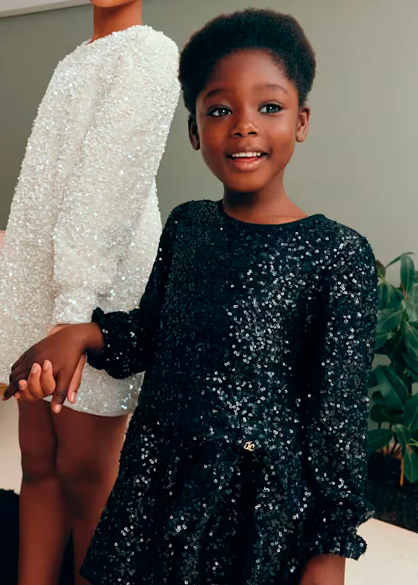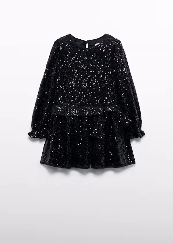 Elegante vestido negro con lentejuelas que brinda un toque especial para cualquier ocasión.